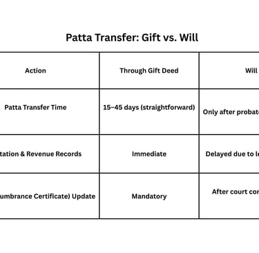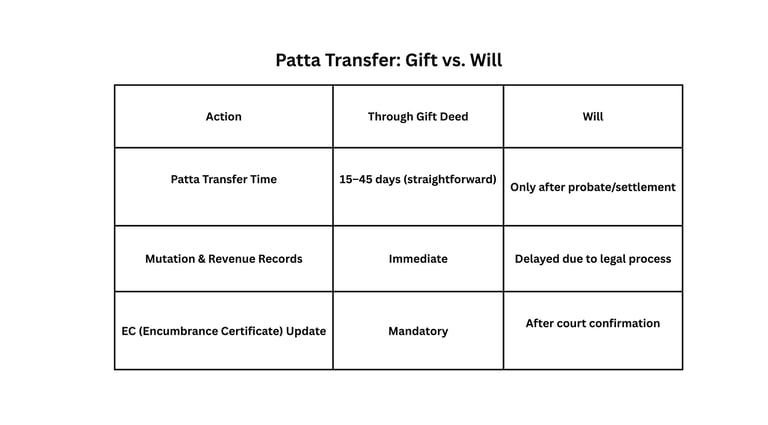 With a Gift Deed, EC, Patta, and revenue records update quickly.