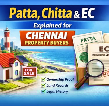 Buying property in Chennai is a big milestone-but it can also feel confusing when you hear terms like Patta Chitta, EC" (Encumbrance Certificate). These documents are not just paperwork; they are critical legal proofs that protect your money and ownership rights.